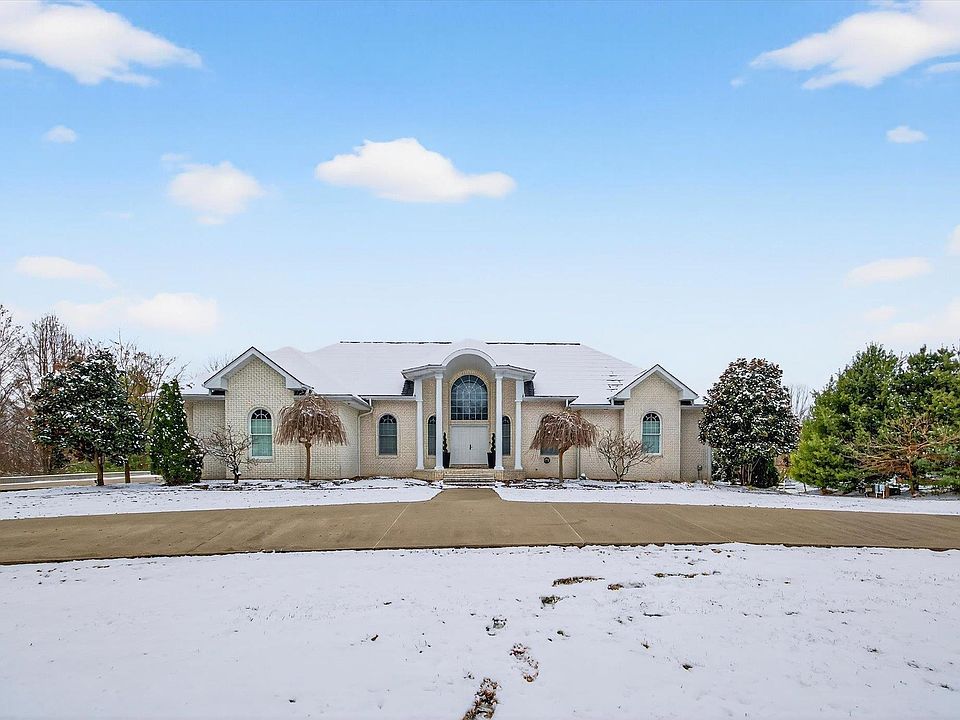 Lovely white brick home on 3 beautiful acres plus or minus on N Sugarland Rd in Washington. Inside you’ll love the fresh updates including recently updated kitchen appliances, newly installed hardwood floors, and a new vanity in the primary suite. The main level features 9 foot ceilings, an open floor plan, a kitchen with cherry cabinets and quartz countertops, a spacious primary suite, plus two additional bedrooms, an additional full bath, and laundry all on the main floor. The bathrooms feature marble flooring throughout. The walk out basement adds incredible flexibility with a dining and family room area, plus a large bedroom, full bath, workout area, and storage. Outdoors, the back deck has been completely rebuilt and connects to the lower patio, making it perfect for entertaining. Geothermal keeps the home comfortable year round and helps keep utility bills low. You also get a 2 car attached garage with a workshop area, plus a pole barn with an upstairs and its own separate 200 amp electric service. Located in a great neighborhood with easy access to I 69 for a quick commute.