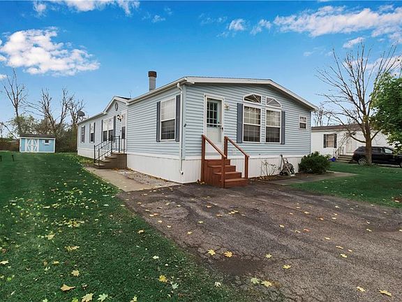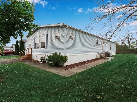 Welcome to the Woodlands, a PET FRIENDLY neighborhood featuring an on-site basketball court, fitness center, and playground, there's plenty to keep everyone occupied! BONUS Wooded lot is your backdrop on this spacious 3 bedroom, 2 full bath doublewide home! Enjoy cooking in your Extra large Kitchen with Lots of Counter Space, Cupboards & Center Island/Breakfast Bar with room for 4, over looking Den with beautiful Stone Wood Fireplace and built-in Book shelf! Kitchen Appliance included for Buyer Convenience! Formal Dining area with built-in Curio Cabinet! Large, Bright Living Room for Formal Entertaining! Vaulted ceilings throughout! Walk in Closet compliments the Spacious Owner's Suite with Private Bathroom double sink, tub and separate shower! Utility Laundry Room complete with Washer and Dryer! Cozy Area off Kitchen perfect for Small Home Office! ROOF 10 Years Young! Solid Mechanics: Furnace replaced in 2011 & Hot Water Tank approximately in 2014! Lot rent includes: water, basic cable, sewer, garbage pickup. Conveniently located near Transit Rd Amenities & a straight shot to Millersport Hwy! Bring your Paint Brush and Cosmetic Renovation Ideas to Make this house your New Home!