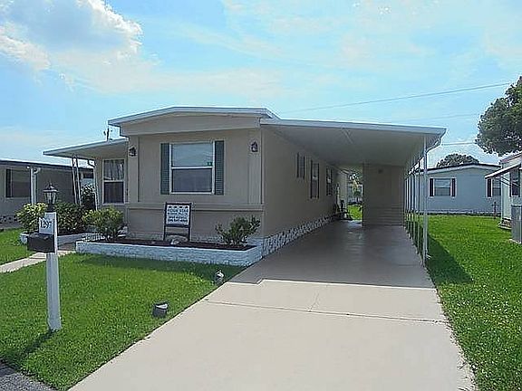 Fully furnished move in ready - pots, pans, dishes, The Works! Florida Room has thermopane window and a 2 yr old window unit. Split floor plan offers privacy. 2 full baths with updated shower stalls. 2 year old washer and dryer, 1 year central air unit and hot water heater. Colonial Colony South has 2 pools, clubhouses and the $648 low lot rent includes water, sewer, trash, lawn care and cable!