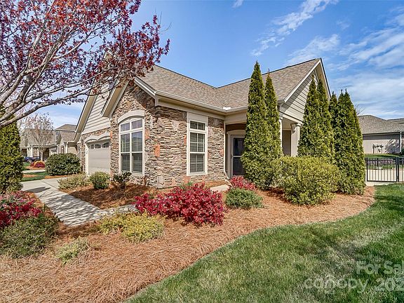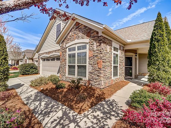 This highly desirable 55+ Community is only minutes from Waverly and Ballantyne, yet nestled in Union County! This Low Maintenance property has so much to offer. This ranch's open floor-plan boasts a Huge Great Room with Fireplace and built-ins with lighted shelving, a spacious Dining Area, and a Chef's Kitchen with Quartz Counters, high end SS Appliances, a double oven, a roomy Breakfast Bar and pull out drawers. There is a pantry, and a larger sewing / craft room nearby that can be a second pantry or a closet too. All cabinets have pull out drawers! The office has wood flooring and built-ins too. The ample Primary Suite has a separate sitting room in the back with patio access, and a luxury bath has walk-in shower. The laundry room has space to work and a sink for convenience. The over-sized courtyard / patio is perfect for entertaining, and has a gas line for a grill. Yard Maintenance, A neighborhood clubhouse, gym and pool round out the features of this relaxing community.