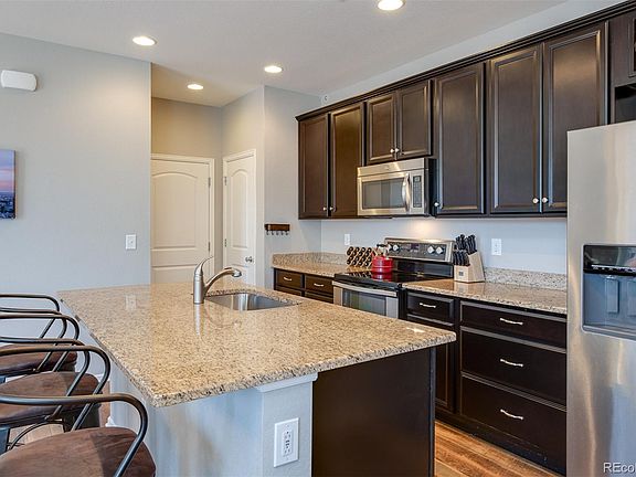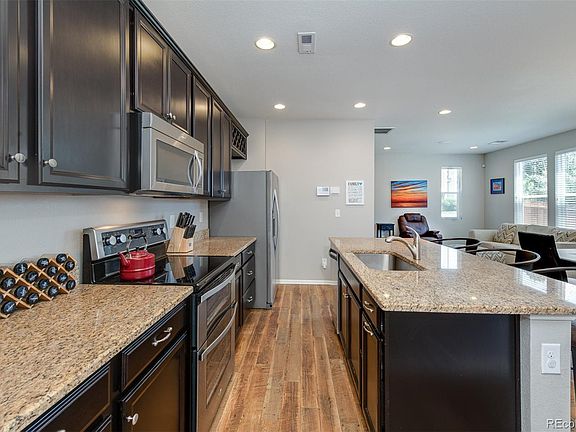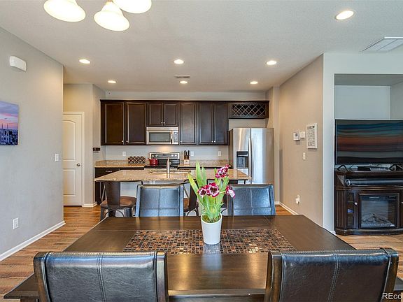 Modern townhome living merges with craftsman-style architecture in this spacious Parkside Villas residence. An expansive open floorplan features hardwood floors and is infused with both natural and recessed lighting; accenting the earthy motif throughout. Stainless steel appliances, dark wood cabinetry and an island/breakfast bar with granite countertops shine in a bright kitchen. This area seamlessly flows into the dining area, creating an inviting space for gatherings. Upstairs, polished bathrooms and two bedrooms — that can also double as guest rooms or offices — accompany the primary suite that boasts a luxurious walk-in closet. A loft-style bonus room creates additional space for work and relaxation, offering versatility to suit new residents’ needs. Downstairs, sliding glass doors open to a cozy patio. Located in the Cherry Creek School District and within close proximity to Cherry Creek Reservoir, Highland Canal Trail and Lowry's restaurants and shops. This Parkside Villas home effortlessly blends convenience with comfort and style. Solar panels are a huge bonus to the potential buyers.