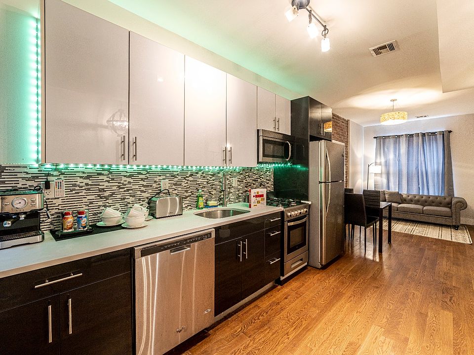 *Large three-bedroom duplex apartment, with backyard access available for immediate move in!* This two-floor duplex apartment features: - Three bedrooms and one full bathroom on the first floor - Huge downstairs space can be used as a 4th bedroom, home office, or recreational space with an additional half-bath - Direct access to a backyard! - Central heat and AC - Modern kitchen with full-size stainless steel appliances, including dishwasher and microwave - Hardwood flooring, exposed brick, and lots of natural light throughout! The building features a laundry room, and is conveniently located near the the 2, 3, and 4 trains, as well as lots of shops and grocery stores! This apartment will not be available for long. For more information on this unit contact Yosef (Joe) immediately! - Pets allowed - No broker fee (photos may be of a similar unit in the building)