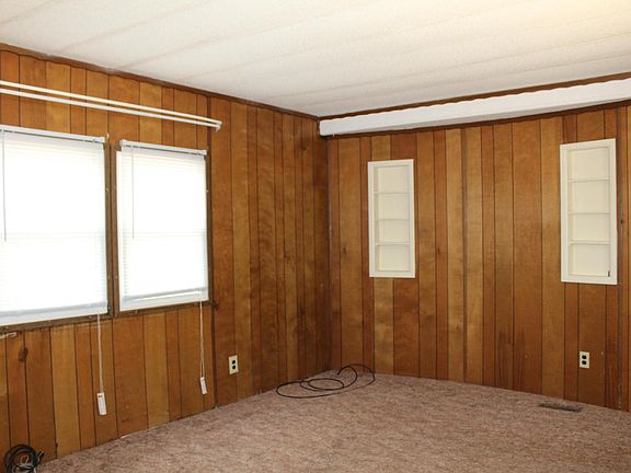 Relax on the screened porch & enjoy the 2+ acre setting of this 2BR mobile home on permanent foundation. Newer windows, electric, flooring & insulation. Small detached garage. Only minutes from shopping & highways. May require special financing.