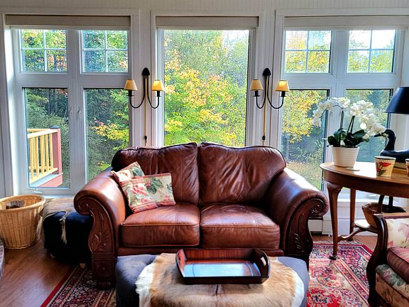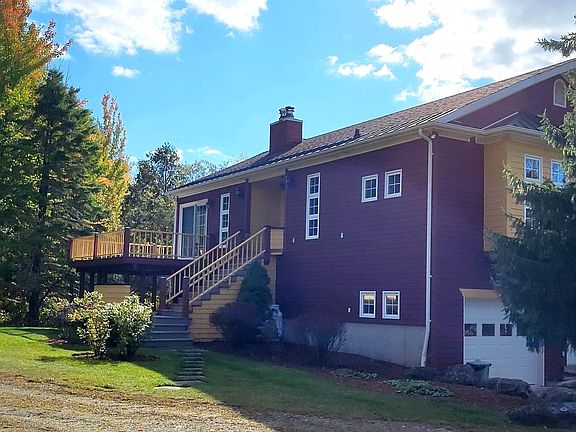 This home is one-of-a-kind! Sitting on 28 acres of gorgeous Vermont land with TONS of amenities including a sauna, several dog runs, and a firewood lift, this 3BR/3BA house is ready for its new owners. There are 3 entrances into the home, one of which leads into the large mudroom on the first floor. Access the garage from here as well as the first-floor living room, which could easily double as a home office. On this floor, you'll also find one of the generously-sized bedrooms, the exercise room (plus sauna!), a 3/4 bathroom, and the wood room. There are 2 sets of stairs to the second floor, one inside and one outside. Floor-to-ceiling windows allow abundant natural light to flow into the large living & dining area on this floor, which also includes an adorable kitchen, a half bath, a sunroom, and the primary bed & bath with a huge clawfoot tub. On the exterior, there are 2 huge porches and a balcony off the primary bedroom. A 35'x25' shed/garage provides tons of room for all your tools and hobbies, with a fenced-in area for animals! The backyard is also fenced in, since this property was often used to train and keep labrador dogs. Excellent place for outdoor recreation like hunting and hiking. Don't miss this place!