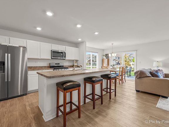 Welcome to this beautifully maintained 3-bedroom, 2.1-bath townhome located in the sought-after West Lake community of Cary. Not only is it an end-unit, it is also on a spacious corner lot! Just 5 years young, this sunny and spacious home backs to a quiet cul-de-sac and enjoys an abundance of green space-perfect for outdoor relaxation and privacy. Inside, you'll find stylish and durable LVP flooring throughout the main floor, a modern kitchen with 42" cabinets, a large island, stainless steel appliances, and a reverse osmosis system. Thoughtfully upgraded with an Ecobee smart thermostat for energy efficiency and comfort, and custom blinds throughout-including up/down shades and blackout options for privacy and light control where you need it most. Upstairs, a versatile loft offers extra living space-ideal for a home office, playroom, or lounge-alongside a convenient second-floor laundry room complete with a brand new washer. The home also features a WiFi-enabled garage door opener, an attached 2-car garage, and conveniently located mailboxes and guest parking for added ease. Located within a highly acclaimed school district and close to the Metra station, shopping, dining, this home offers the perfect blend of comfort, style, and convenience. Don't miss this move-in ready gem in one of Cary's most desirable neighborhoods!