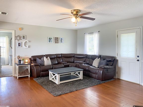 A lovely little country style home in a rural subdivision setting in Summerdale. Situated in a cul-de-sac, this home offers an expansive back yard with a large patio. There is a separate dwelling workshop, wired for electricity with separate meter. The living area has hard wood floors and is centrally located in the center of the split floor plan. The kitchen and breakfast area overlook the big backyard. Rare Baldwin County price point- Priced to sell! Roof was replaced approx. 2018.