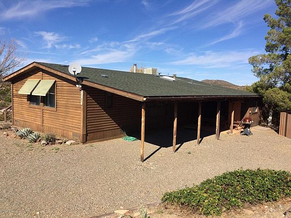 Charming getaway with amazing views, centrally located between Phoenix and Prescott!!! This rustic, log sided home with a cabin feel has a newer roof and a cozy wood burning stove. Split floor plan with lots of storage. Enjoy starry nights in the hot tub on flagstone patio or on the front deck overlooking valley & mountain views. All paved roads, level driveway and 2 miles to Prescott National Forest Land!!!