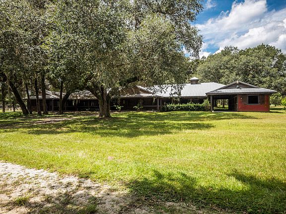 Outdoor enthusiast's take notice! Bring your horses, cattle or other livestock to this fantastic property located just outside of Ocala. Gated entry leads to 20 stall barn with 3 bedroom 2 1/2 bath apartment, lab, and climate controlled tack room. Drive a little further and you will find an adorable 2 bedroom, 2 bath cottage home with huge master suite, fireplace and oversized laundry area. Enjoy the scenery, your animals, or wildlife, from the covered porch. Plenty of room to ride on the 250 x 300 lighted riding arena or ride or hike the entire property. Additional 10 stall barn with separate entrance gives you the option for seasonal or year round income. Plenty of storage for vehicles, machinery, hay or accessories in the spacious shop.