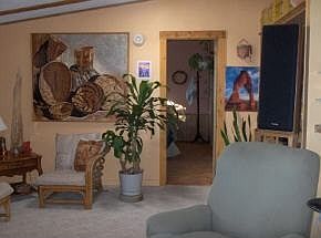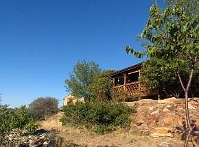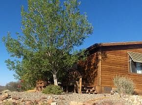 M1686-Great views! 1988 cedar log-sided mfd home on 0.85 acre. 1176 SF split floor plan, 2 masters, 1-3/4 baths, huge closets, eat-in kitchen, large living room, skylights, large covered deck w/fantastic views and shade in front. Covered patio and 2-car carport. Privacy fence w/flagstone, hot tub and firepit for entertaining. Peach, apricot, apple and plum trees w/a seasoned fenced garden. RV parking, horse privileges, separate office, 2 storage sheds, lots of rock work. Much more!