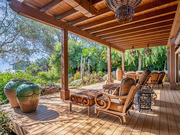 From the coastal breeze to the lush, mature landscaping, this secluded Spanish-Mediterranean-style estate boasts breathtaking views of Torrey Pines State Beach while offering comforts of a serene lifestyle. Nestled in Del Mar Terrace, this home has been completely rebuilt with no expense spared and numerous exquisite custom additions including flagstone walkway throughout and an electric entry gate for added privacy. In this three-bedroom, two and half bath home you are greeted with a gorgeous mosaic-tiled entryway and an opulent hand-crafted glass-blown chandelier. Rich, walnut wood flooring throughout the home and high-quality extras in construction such as floor outlets in the great room and grape stake ceilings. The main-floor master suite has a custom, large sliding door looking out to the veranda. The master bathroom features exquisite craftsmanship of ornate mosaic tiling and a claw foot soaking tub to name a few. The kitchen is furnished with the finest in luxury Italian kitchen design and award-winning cabinetry, made by Snaidero, including a custom refrigerator cabinet. All high-end appliances, including a Miele oven, Bosch cooktop, and Viking refrigerator. The second-floor bedroom features Spanish double doors leading to the balcony overlooking the south side of the estate onto a small vineyard and fruit trees. NO HOA & Mello-Roos ; See Supplement for more amenities.