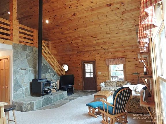 Looking for your own slice of heaven on earth? Look no further very private acreage located off the hwy through the woods on the Little Deschutes River this log home is a place to get away from it all. Master bedroom is a loft with a powder room. Two bedrooms down, one makes a great bunk room as the closets double as laundry facility. Covered front porch looks out towards the river, the river cannot be seen from porch because of willows along the river. Open great room is spacious - backs blm