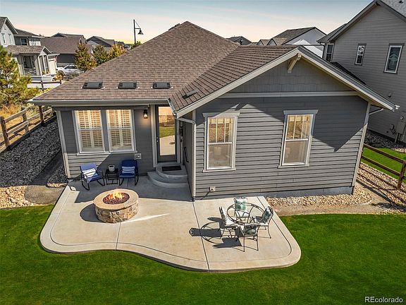 Retreat to the generously sized master suite, complete with a walk-in closet and a luxurious walk-in shower. Step outside to the inviting back patio, featuring a motorized sunshade for added comfort and a cozy fire pit where you can relax and enjoy stunning mountain views.