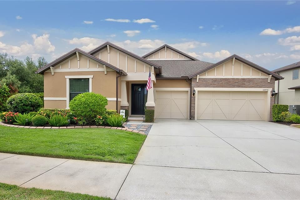 Welcome to your dream home, where location, luxury, and tranquility meet! Nestled on a private conservation water-view lot, this move-in-ready pool home offers the perfect balance of serenity and elegance. Boasting 4 bedrooms, a den, and 3 full baths, this home is thoughtfully designed to meet your every need. Upon entry, you're greeted by a spacious, inviting foyer, adorned with beautiful Tortoise Shell Hardwood flooring that flows seamlessly through the home's main living areas. The heart of the home is its gourmet kitchen, perfect for culinary enthusiasts and gatherings, featuring ample storage, Kitchen Aid appliances, including a 5-burner cooktop, convection microwave, convection oven, granite countertops, and stunning cabinetry that enhance both form and function. Whether you're entertaining or enjoying a quiet moment, the serene water views and natural beauty of the conservation area right outside your door create an idyllic backdrop for everyday living. Step outside to your meticulously maintained patio, equipped with a built-in outdoor kitchen complete with granite countertops, hot/cold water w/ disposal, built-in refrigerator, stove, and grill—perfect for al fresco dining. The custom-designed freeform pool, with its sun shelf, rock waterfall, and expansive built-in spa with stacked stone surround, adds a luxurious touch to the outdoor space. Inside, the master bedroom is a true retreat, featuring a tray ceiling, large walk-in closet with custom built-ins, dual sinks with a built-in makeup vanity, a spacious walk-in shower with a seamless glass surround, and a separate garden tub for ultimate relaxation. Additional features include a versatile bonus room, ideal for a home office, playroom, or cozy den, an interior laundry room with built-in utility sink and storage, a large three-car garage with 220v hookup, plantation shutters throughout, remote shades in the café and family room, surround sound pre-wiring with speakers in the family room and lanai, custom Elfa closet systems in bedrooms and pantry, Window tint throughout and whole-house color-changing LED lighting. This exceptional home offers the ultimate in comfort, style, and convenience. Don’t miss your chance to make it yours—schedule a showing today and imagine yourself living in this peaceful oasis!