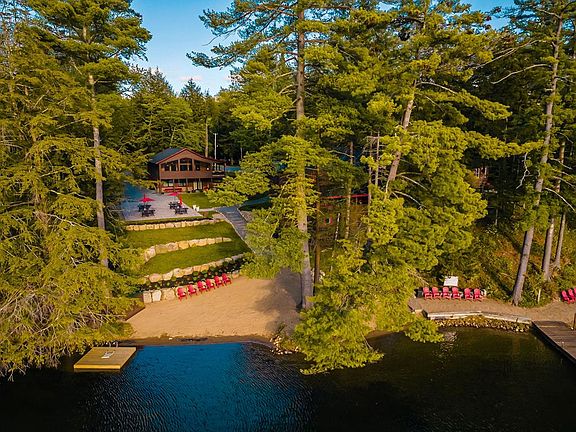 White Lake Lodge is nestled among the pines along the shore of beautiful clean and clear White Lake. Boasting one of best sandy beaches with 250 feet of frontage, this is an absolutely perfect place to gather with your favorite guests. The property includes a new 3600 sq foot 2 bedroom spacious open concept home built in 2016, and 7 Adirondack cabin and lodge buildings all with many upgrades. Attention to detail runs throughout. The cabins vary in size and can accommodate from 2 to 16 people. Total beds 25, baths 10.5. Enjoy fishing, kayaking, boating, swimming as well as close proximity to Old Forge. So many extra with this property, pontoon boat, canoe and kayaks, 3 floating docks. A rare opportunity to purchase for your own Adirondack compound or continue to run it as a successful business. White Lake Lodge is a mixed use property with historically strong income potential as one of the only wedding retreats in the area. Professionally landscaped. Includes most but not all furnishing
