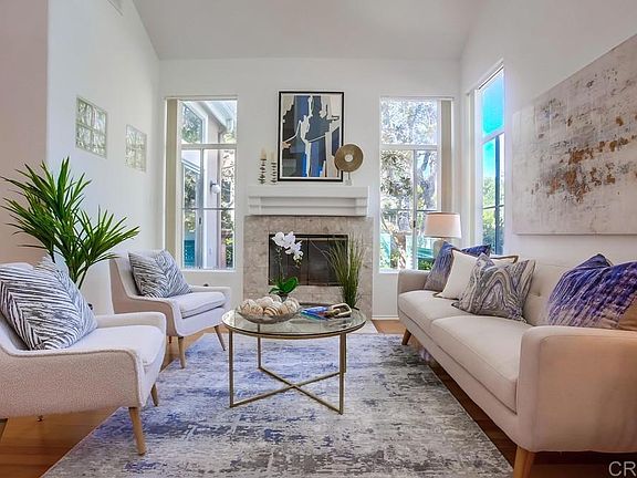 You are going to love this newly updated end unit, Halcyon Townhome in the heart of Carmel Valley! From the moment you walk into this townhome you get bathed in natural sunlight from its many windows and high vaulted ceilings. The newly painted walls, the new light custom carpet and original beautiful hardwood floors all give way to a light and easy coastal feel. The decadent kitchen with its on trend cabinets, make you feel like you are in an artist loft with its rich and deep blue color tones accented with golden hardware. Upstairs you will find dual primary suites and 1 additional bedroom that can be used as an office, workout area and or guest/child’s room. Both Primary suites have high vaulted ceilings and the second floor primary suite has a large walk in closet for all your clothing storage needs. . Enjoy your summer nights out on your west facing patio where you can enjoy sunsets and the coastal breezes. Enjoy swimming and relaxing in Halcyon’s community pool, and jacuzzi and then head out on foot to Del Mar Highlands and/or One Paseo lifestyle Centers that have a multitude of shopping, restaurants, and entertainment for you to enjoy! Walk to Carmel Creek Elementary, Torrey Pines HS. This home would also make for a great investment property as rents are high in this area and schools are terrific. This won’t last long, come see it!