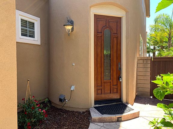 Beautiful Bordeaux Plan 3B with many upgrades and just remodeled! Formal entry with new wood custom inlay flooring. Open and formal living room and dining room with dual sided fireplace. Open floorplan with gourmet kitchen and family room with wall to wall windows, granite countertops, stainless appliances, refrigerator, pantry with French Door. New designer carpet on second floor. Custom tile flooring throughout bathrooms and laundry room. Cesarstone surfaces in bathrooms. Central air conditioning, pre-wired for security system, study room, workshop in garage. Canyon views and balcony with sliding glass door from master bedroom. Second balcony from 2nd bedroom. Beautifully landscaped yard with fire pit. Garden maintenance paid by landlord. Across the street from Sycamore Ridge elementary. Walking distance to award winning schools: Pacific Trail Middle School, Torrey Pines high school or CCA. Community Private Club w/Pool/Spa and Gym. Walking distance to the Village at Pacific Highlands Ranch with Starbucks, Trader Joe's, and fine dining. Close to shopping, freeway, new city park and library. Minutes to the beach. One pet lighter than 20 lbs is ok with additional security deposit. Landlord pays for the gardening service, and HoA (includes private club access and garbage service). Tenant pays for utilities (water, gas and electricity).