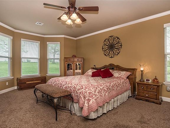 This gorgeous home sits on 5 acres of secluded land! This home features an open and spacious living area complete with fireplace, formal dining area with tile flooring, spacious kitchen with stainless steel appliances and tons of cabinet and countertop space, library with large built-in bookcases, 2 built-in computer desks, 1 bonus room upstairs, and 1 located downstairs. Large master bedroom/bath with walk-in shower, double vanity sinks and garden tub. Enjoy the HUGE deck overlooking the privacy of nature, wildlife and acreage.