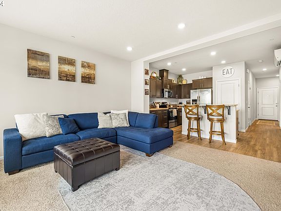 Welcome to modern comfort in this delightful townhome, nestled in the heart of Happy Valley. Boasting 3 beds, 2.5 baths across 1,839 sqft, with attached garage and A/C. Features a living room, airy daylight basement with yard access, a cozy gas fireplace, granite countertops, and stainless steel appliances. Not to be missed, the spacious master bedroom includes a walk-in closet, rounding out this perfect home setup. The large deck invites relaxation, overlooking a scenic walking path. Enjoy the top-tier North Clackamas school district. A stone's throw from New Seasons, coffee shops, and eateries, convenience is yours. Parks nearby enhance this prime offering.