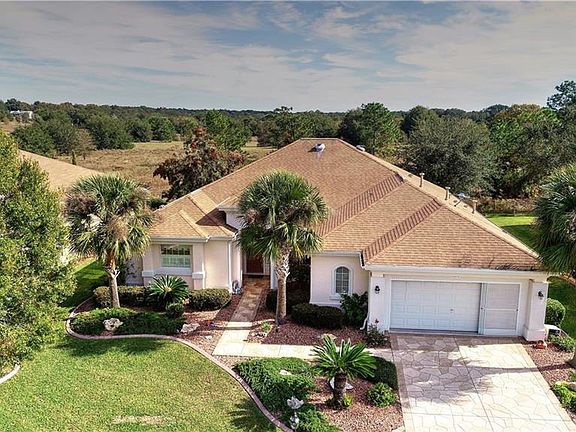Ideally located within the 55+ resort style community of Del Webb Spruce Creek Golf & Country Club, (only 10 minutes from The Villages), this stunning home provides awesome curb appeal and private treed panoramic views overlooking a dedicated wildlife preserve. This one owner, well-maintained home is spacious, open and airy with 9' ceilings, 3 bedrooms (no closet in 3rd bedroom), 2 1/2 baths, laundry room, 602 sq.ft. screened lanai, and 632 sq.ft. garage with room for your workshop AND golf cart! The spacious designer kitchen will please the most discriminating chef with tall 42" oak upper cabinets, loads of counter space, upgraded stainless steel appliances, and large double pantry. The newer dual zoned HVAC units and gas furnace have state of the art electronic monitoring.