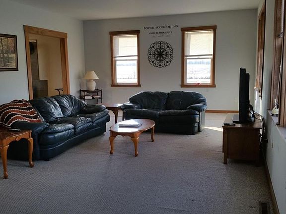 Wonderful spacious home on just over 7 acres! Beautiful hardwood floors in the foyer and hall, ceramic tile in the kitchen, half bath and master bath, office and den with wood burning stove, huge great room and formal dining room! Upstairs has family room, large master, master bath with jetted tub and 3 additional bedrooms! Kitchen has newer cabinets, french doors leading to a newer deck overlooking the beautiful acreage with some woods! Full basement! 2,688 sq ft of finished living space, imagine if you finished the basement, WOW! Just a bit of work to be done but priced accordingly!