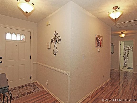 This extremely well maintained home in Southfork II addition is ready for you to move in! Several updates have been made in recent years. Updates include new laminate wood floors in the kitchen, dining room, front entryway & hallway in 2021. New carpet installed in the primary bathroom in 2021. New carpet in the living area in 2022. New gas hot water tank in 2021. Large primary bathroom with his/hers closets, jetted tub, separate shower, storage closet & double sinks. All appliances including washer, dryer, stove, refrigerator and freezer in the utility room remain with the home. Nice enclosed patio/sunroom just off the dining area with access to the backyard. Fenced backyard with shed.