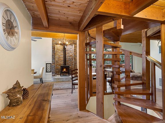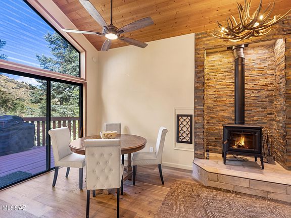 Rest, reset & recharge at this updated private cabin w/ separate lower level attached guest unit located in the woods just above Summerhaven. With short-term rentals allowed, this cabin offers versatility of use- use the cabin, rent it for income, or both. New roof installed 2020'. Close to town & immediate access to trails for hiking& biking. A driveway w/ pavers leads to the front door. The entry greets you w/ high, wood-lined vaulted ceilings and a new wood-burning stove surrounded by floor-to-ceiling stacked stone. The spacious great room w/ dining area that is open to the kitchen is designed family time & entertaining. A wall of windows w/ a sliding glass door that leads to one of the wraparound decks bathes the space in natural light CONT.. & creates the ease of indoor/outdoor living in the cool mountain temperatures. The primary suite is located on the main level of the cabin. The primary bathroom has new ceramic flooring, vanity, backsplash, lighting, and fixtures. Upstairs, in the 660 sf loft bedroom w/ a full bath, there is plenty of room with a large bonus area for guests or kids to sleep and hang out. Sliding glass doors on both sides of the loft lead to private decks. The updated bathroom has a new vanity, backsplash, fixtures, and lighting. The separate, lower-level guest unit has a separate entrance and parking area, making it ideal to rent out separately from the main level cabin or live in one and rent the other. The space was recently transformed with new engineered wood floors, ceramic tile, and a remodeled kitchen with new stainless steel appliances. The full bathroom has a new vanity, ceramic tile floors, fixtures, and lighting.