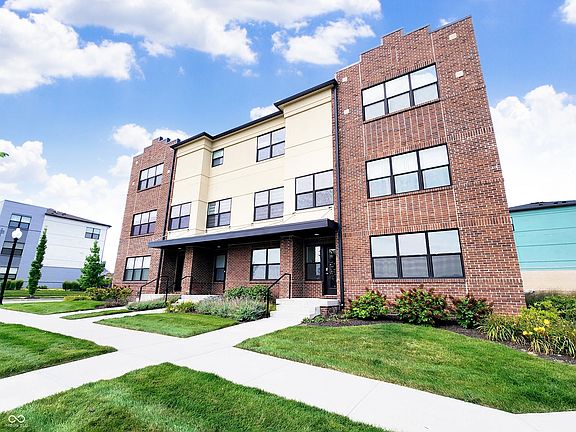 Modern, sleek, like-new Art-Deco style townhome located in the highly sought-after Village of West Clay in Carmel, Indiana. Built in 2021, This pristine end unit was former model unit for builder, is the only 3-unit building in the entire village community and within a short walking distance to the many amenities the village has to offer including: 3 club houses, tennis and basketball courts, 2 gyms, softball field, upscale shopping and dining, multiple parks, 3 swimming pools, outdoor summer concerts, and miles of walking and biking paths directly accessible from this home. You'll also enjoy serene fountain square views from the great room & primary bedroom. Just off the spacious chef's kitchen a long and spacious sunset facing balcony awaits for outdoor relaxation and entertaining. Features inside include: modern finishes, integrated wi-fi, security system, smart technology home thermostats and smart garage door opener, quartz countertops, stainless steel appliances, 9' ceilings on all levels and the unit is pre-plumbed for a water softener. Ground level is already plumbed for an extra bathroom. This unity has only had one owner and smoke/pet free. Top rated Carmel Clay Schools. All appliances stay!