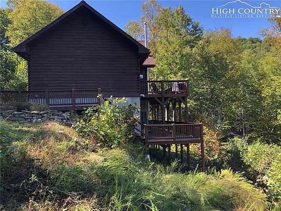 Looking for privacy, look no further! Escape to peace and quiet in this beautiful cabin that's situated on over 11 acres with amazing long-range mountain views from your back deck. Walk into this home and you will find an open floor plan with a wall of glass to take in this view. You will find two bedrooms on this level, open kitchen with granite counter tops, gas cook top, an abundance of cabinets, counter space and pantry area. Upstairs is an open loft for additional sleeping area or game room. Downstairs is finished out with 2 bedrooms/bathroom and spacious living area for entertaining. Also downstairs you will find a small workshop and corner wood burning, free standing woodstove. Wonderful piece of property for the outdoors man who likes to take advantage of fishing, hiking, hunting, and kayaking. Just minutes to the Original Mast General Store, Valle Crucis park, Watauga River and much more. Furnished, turn-key with a few exceptions.