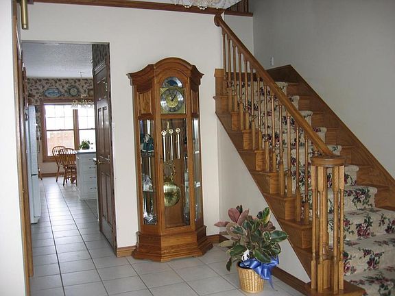 Custom home. Paver sidewalk, ceramic tile in foyer, kit, dining rm, parquet flr in formal dining rm, piano window.6-panel doors thruout main flr. Flr heat all 3 levels, lg BR's, hardwood flrs in mstr. w/ his/her closets. Dbl sinks in guest bath. Some built-ins, office w/ built-in shelves, family rm w/ beamed ceiling, wood f/p, patio doors. 20x20 stone terrace, main flr laundry. A must see!!