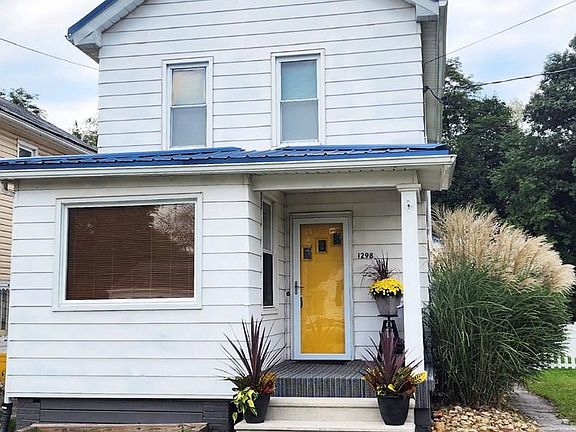 Come see this PICTURE-PERFECT home in PORTAGE! 2 spacious bedrooms plus a 3rd "bonus" room which most recently utilized as an office, featuring plenty of built-in shelving, has potential for a 3rd bedroom, nursery or walk-in closet! Large eat-in kitchen with plenty of cabinets & newer appliances included. Formal dining room is open to the living room with open stairway. Front sunroom with large windows which bring in the natural sunlight making this home bright and airy. Entire interior has been freshly painted. Custom window blinds & shades. Full walk-up attic and basement offer plenty of storage. Huge back yard with pretty white vinyl fencing is gated with new matching shed. Front and rear covered porches. Newer metal roof.