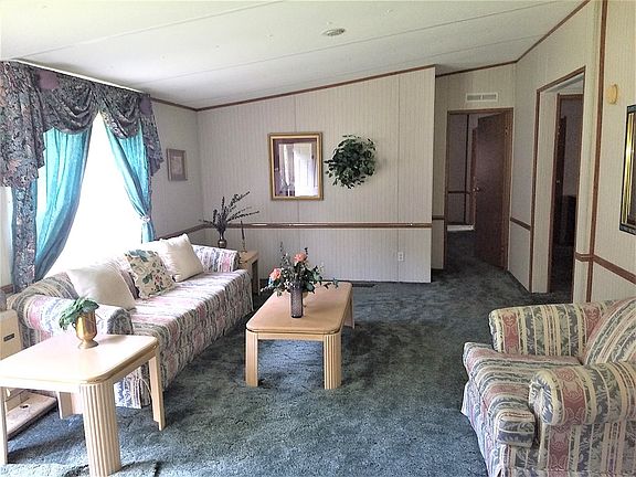 Spacious 3 bedroom, 2 bath mobile home just outside of town, has family room and living room, fireplace in family room, covered porch in rear off family room; lots of kitchen storage/cabinets, island in kitchen, utility room off kitchen includes washer and dryer; double sink, garden tub and shower in master bath; level lot, .70 acres.