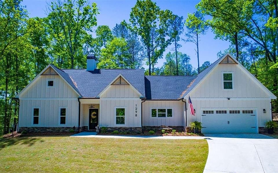 Welcome home! This less than one year old modern farmhouse boasts charming accents and curb appeal. The exterior is adorned with stone, board and batten siding on the front, and hardie plank siding on the additional three sides. Upon entering the home, you are greeted by a generous sized, open concept living area with numerous windows ideal for entertaining guests or spending quality time with family. The living room contains a gas fireplace with 9' ceilings creating a warm and cozy atmosphere. The oversized kitchen with 51 cabinets/drawers is a chef's dream complete with granite counter tops, stainless steel appliances, and a 51" x 99" center island. A separate dining area adjacent to the kitchen offers a space for formal meals or casual gatherings. The primary bedroom with a double tray ceiling is located on the main level and provides a peaceful retreat from the hustle and bustle from daily life. It boasts a luxurious ensuite bathroom with double vanities, a soaking tub, separate shower, and a custom walk-in closet. There are 2 additional bedrooms with a jack and jill bathroom on the main level. The 4th bedroom is located above the garage with a full bath and a generous sized custom closet perfect for a teen hideaway, the in laws, or guests. Many of the fans and light fixtures have been upgraded as well as waterproof LVP flooring. The home features a covered patio off the living area that is also accessible from the primary bedroom. Perfect for enjoying morning coffee or bird watching. The flat backyard offers plenty of space for outdoor activities. Fairfield Plantation offers a variety of amenities for residents to enjoy, including gated 24 hour private security, 3 lakes, boating, marina, clubhouse, golf course, swimming pools, tennis courts, walking trails, and more. The community provides a tranquil setting with scenic views and a welcoming atmosphere. This craftsman ranch home combines style, functionality, and comfort, making it the perfect place to call home in Villa Rica, GA's sought-after Fairfield Plantation community.