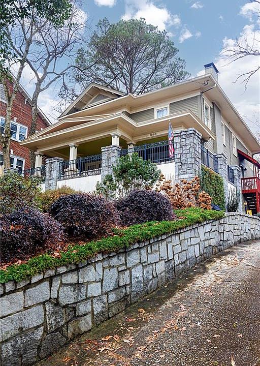 Steps from Piedmont Park, the BeltLine, and the Atlanta Botanical Gardens, this 1920s home has all the architectural drama and character of the quintessential Ansley Park home. Sprawling porches, 10 ft ceilings, crown molding, airy and spacious rooms, stunning window details, and hardwood floors are just a few of the lovely details of this four bedroom, two-and-a-half bath home. This home is situated high off the street and has been thoughtfully landscaped to offer its inhabitants both quiet and privacy. The main floor provides a plethora of large yet intimate entertaining spaces including a formal living room adorned with a fireplace and an elegant stairwell leading up to the home's second story. Adjacent to the living room sits a gracious parlor/office as well as the large dining room room with cross lattice stained glass windows. From there you'll find the updated kitchen with original built-in glass cabinetry, gas stove and range, Dacor refrigerator and oven and adjoining cozy keeping/breakfast room. Bright and airy, the back wall of the kitchen and keeping room are lined with windows and offers French door access to a huge back deck - the perfect space for a summer cookout! The second story hosts four generous bedrooms, two bathrooms with clawfoot tubs and lovely tile details, a laundry room, and additional bonus/work-out/office space. Plumbed, day-lit, and offering interior access from the central hallway, the home's full basement is ripe for the finishing and could not only add a 1,000 soft of additional living space, it could also act as a wonderful au-pair suite or rental space if so desired. Until then, it will provide ample dry storage space and make for a wonderful crafting room or workshop. The home rests on almost .3 acres and could offer not only a large backyard but also a garage. The possibilities are endless and you cannot recreate details like these today. Your dream home awaits right in the heart of Midtown - don't wait!