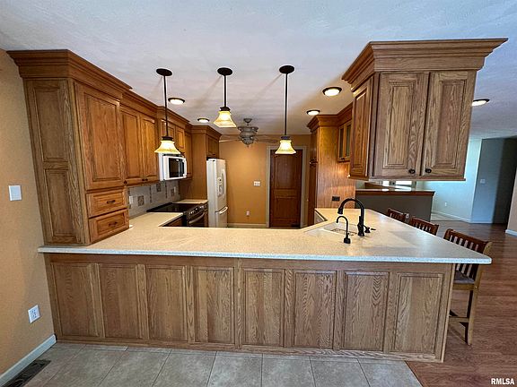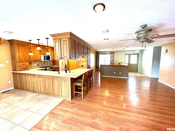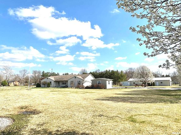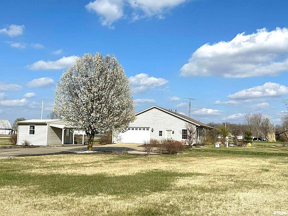 This custom-built 2400 sq ft. home is situated on a 3-acre lot close to town. It features an open floor plan, 3 bedrooms and 2 full baths. Large kitchen with custom cabinets, solid surface countertops and all appliances. Large living and family rooms, dining room and laundry room with washer and dryer. Primary bedroom has plenty of space and has a full bath. Home has geothermal with gas furnace for backup. Outside you will find that this home has been professionally landscaped, has a covered front porch, 30x120 pole building with concrete floor, power, water and office space. There is an additional 13x15 she-shed with power. 2 c. attached garage with concrete driveway. K-8 school district.