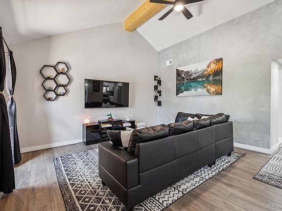 Price improvement! and an ASSUMABLE FHA MORTGAGE WITH A 5.25% INTEREST RATE! Welcome to this beautifully updated town-home with modern fixtures and your very own 2-car garage! As you walk into this home, the first thing you'll notice is the functional open floor plan, vaulted ceiling, and an abundance of natural sunlight coming in from the massive windows. The high-quality laminate flooring throughout was installed in 2023 and the kitchen is fully updated with modern cabinets/light fixtures, stainless steel appliances, a breakfast bar, and beautiful quartz countertops. Continuing into the home, you will find the main bathroom that includes stylish updates with a luxurious feel. Across the hall is a charming laundry nook that includes extra storage, washer and dryer, and easy access to the newer furnace, next is a spacious secondary bedroom with a big picture window and a large closet. The massive primary bedroom features a fully updated en-suite bathroom with a barn door and a large walk-in closet. As if that wasn't enough, you can step out of your front door onto your open, enclosed wood deck that has room to grill and relax in the warmth of the Colorado Sun- Enjoy walking the greenbelt nearby and swimming in the community pool! Convenient access to 225, restaurants, shopping and Aurora's city center. I'm sure you will agree this home is filled with warmth and charm, and its ready for it's new owner! This one will go fast, so be sure to come see it today!