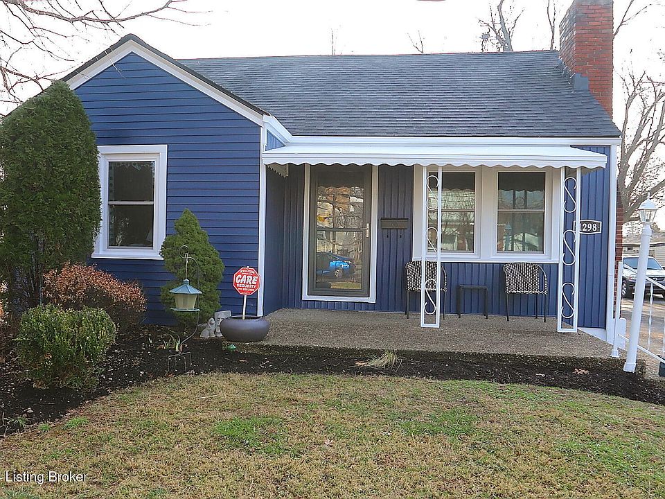 Welcome to 1298 Springdale Drive. This wonderful, spacious, Cape Cod is located in the Campbells Western neighborhood near Audubon Park and Camp Taylor. Pulling up to this home the striking, freshly painted, royal blue exterior will certainly grab your attention. As you walk up the driveway to the front of the home you will be greeted by a lovely covered front porch. Heading inside brings you into the formal living room which offers a wood burning fireplace and hardwood flooring. The large opening at the back of the living room leads into the open eat-in kitchen and family room. The kitchen offers all white cabinetry, tile backsplash, and black and stainless steel appliances. The family room is spacious and has abundant natural light from the glass door to the deck. Off the end of the family room are a full bath and a large storage closet. The hallway off of the side of kitchen leads down to two bedrooms, including the primary, and the other full bath. Both of these bedrooms are good sized and have hardwood floors. Upstairs is a 3rd bedroom that spans the width of the home. Downstairs is a full unfinished basement offering the laundry area and tons of storage space. The fantastic rear deck spans the width of the home and is covered by a metal roof. The deck overlooks a huge, fully fenced yard with fire pit and ample space for kids or pets to play in. The storage shed provides plenty of room to hold all your lawn equipment. Additional features include brand new roof installed in November 2024 and replacement triple pane windows. Don't miss this one and schedule a showing today!