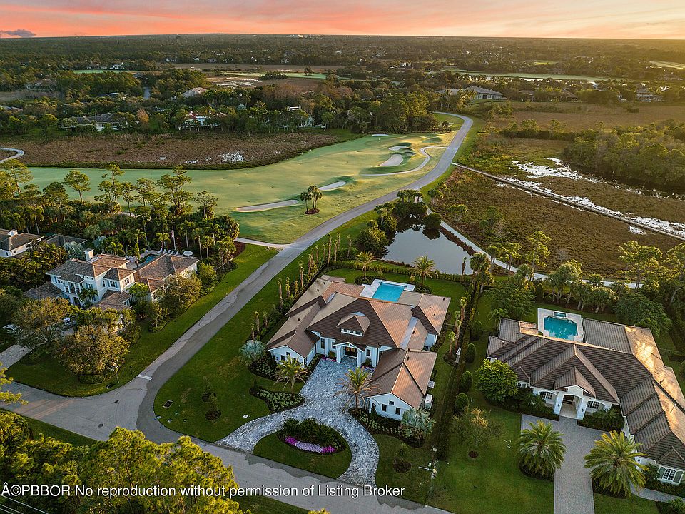 Exquisite New Construction - 4BR/5.2BA with office/den on an oversized, corner lot. Dual master baths with generous closets, steam shower and elegant detail. Light and bright transitional decor with every detail imaginable: Custom 14' mahogany entry door, custom 14' sliding glass doors overlooking the pool/spa, wide-planked European white oak hardwood flooring, wine room with full wet-bar. Dream kitchen with Sub-Zero and Wolf, outdoor living with fireplace and electronic screens, summer kitchen, 3-car garage with high ceilings and doors to accommodate lifts for the car enthusiast...NO detail overlooked! A must see property, nestled within one of the finest gated golf communities in Palm Beach County. No tee times and minutes to 5-star dining, beaches and Palm Beach shopping.