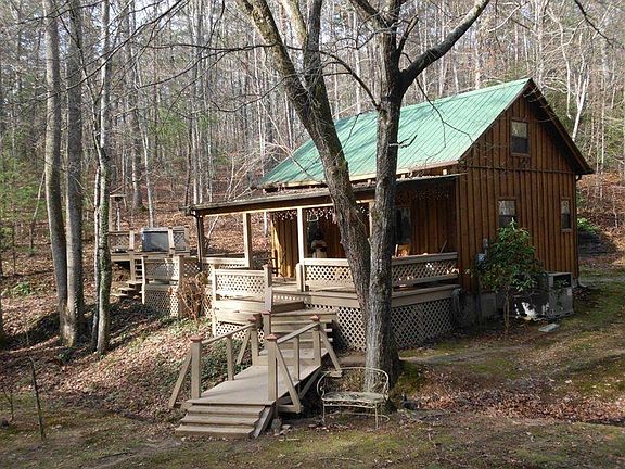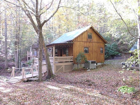 Totally adorable cottage on a private, spring fed pond. ''The Lily Pad'' is a unique cabin nestled in a private, wooded setting with an aura of tranquility. The property offers gently rolling woodlands with trails, ample wildlife and perfect picnic areas. This cozy cabin has a full length front porch, a deck area with hot tub, a storage building / workshop and a potting shed. The whole package is filled with character!The kitchen has new granite counter tops. All appliances, including washer & dryer, stay stay. The spring fed creek flows past the front porch, along side the beautiful yard where there is a horseshoe pit & picnic area and and makes it's way into the wonderful pond. Move-in ready cabin!