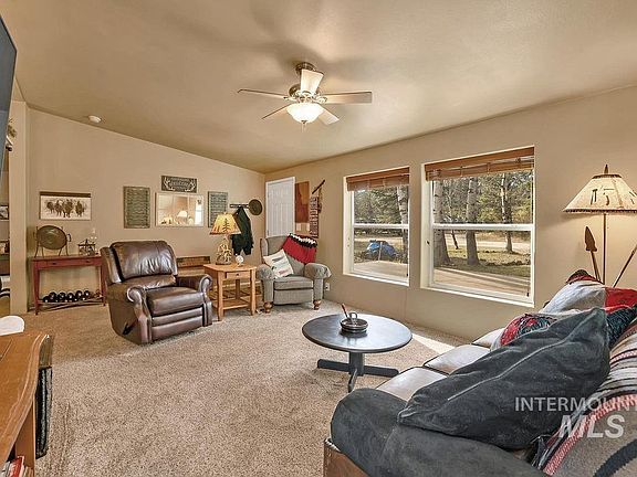 Perfectly maintained, 3 bed/2 bath home with separate living & family rooms. Extra bonus is the 22'x9' Fan Cave or office, located in the huge 864 sq.ft. fully insulated attached garage! Subdivision has waterfront beach for homeowners use, walking distance from home. Great split bedroom design & open floorplan. Summer enjoy the 400 sq.ft. deck overlooking West Mountain. Perfect location near Cascade Lake, and a quick drive to Tamarack Four Season Resort. Endless year round recreation! Perfect full time home or excellent investment in this rapidly growing area. Wooded corner lot! $70 yearly HOA fee is for the use of the subdivision lake front park/beach lot and no CCR's. 22'x9' "fan cave/office" is not included in the square footage, this is located in the garage. Garage has tons of storage space with elevated ceiling.