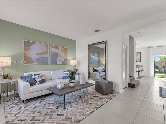 South Florida living at its best! This former builder model has never been lived in and is perfect as a starter home, second home, or investment. The 3BR/2.5BA layout offers modern comfort with a sleek kitchen featuring stainless steel appliances, a fenced rear yard, and a spacious primary bath with walk-in shower. Furniture not included but negotiable. This home also provides Impact Glass windows and doors. Enjoy affordable HOA fees and great amenities including a clubhouse, fitness center, pool, and tot lot. Square footage approximate.