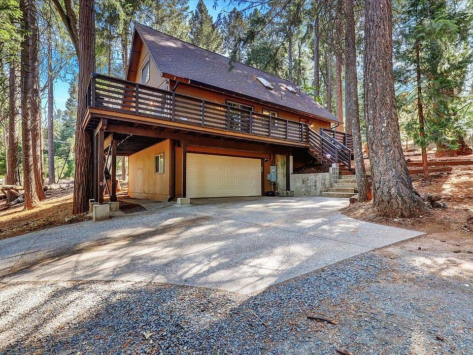 Nestled in the picturesque Sierra Foothills, a charming home in Cascade Shores offers the perfect blend of tranquility and adventure. Just minutes from Scotts Flat Lake, this residence provides easy access to swimming, boating, fishing, and paddle boarding. Despite its serene setting, the home is a short drive from the historic charm of downtown Nevada City. Inside, the spacious living area welcomes you with high ceilings and the cozy warmth of a wood-burning stove. This inviting space serves as the heart of the home, where family and friends gather to share stories and create memories. Multiple sliding doors connect the indoors with the outdoors, leading to an expansive wrap-around deck. Here, you can enjoy the fresh mountain air, surrounded by towering trees and soothing nature sounds. The main level features two bedrooms and a full bathroom, offering ample space for guests or family members. Upstairs, the primary bedroom provides a private sanctuary with an ensuite bath for added luxury. A charming loft area adjacent to the primary bedroom offers versatile space, ideal for a home office, reading nook, or creative studio. This enchanting home in the Sierra Foothills is more than just a residence; it's a gateway to a lifestyle filled with natural beauty and outdoor fun!