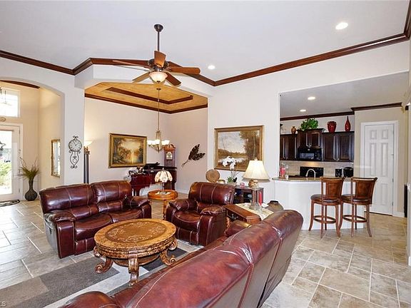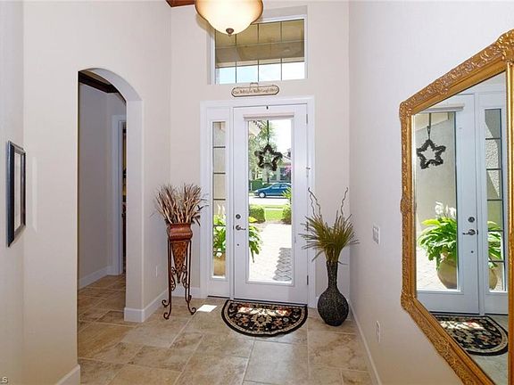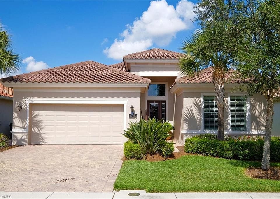 Beautifully maintained home has everything you could want with 3 bedrooms, 2 baths, 2 car garage with storage, extended screened brick paver lanai which offers a very serene setting to take in the Florida breezes and watch the sunsets, all this situated on a very lovely lake view lot. Home features IMPACT GLASS WINDOWS (great upgrade), plantation shutters throughout, upgraded tile, crown molding, pendant lighting, new paint, trey ceilings, breakfast nook and breakfast bar, granite tops throughout, high ceilings, laundry tub, NEW water heater, new disposal, extra storage in the garage. Home is only a TWO MINUTE WALK to many great amenities including resort style pool and spa, Har-Tru tennis courts, fitness center, clubhouse. Full Golf Membership, Associate Membership or Social Membership purchase is optional. Location is ideal being close to I-75, the airport, restaurants and shops, and the Twins and Red Sox ball parks.