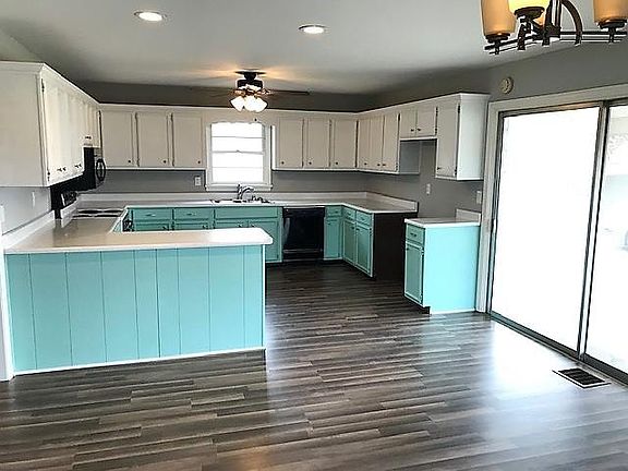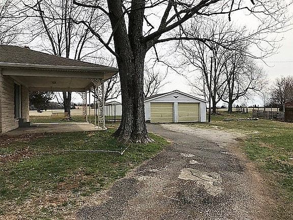 Newly updated 4 bedroom 2 full bath Bedford stone home. Home features hardwood flooring, new laminate flooring, all new light fixtures, spacious kitchen, formal dining room, updated bathrooms, full unfinished basement, large master suite with walk in closet, covered back and side concrete patio, 2 car detached garage, small shed, mature shade trees and gorgeous country views from the back yard.
