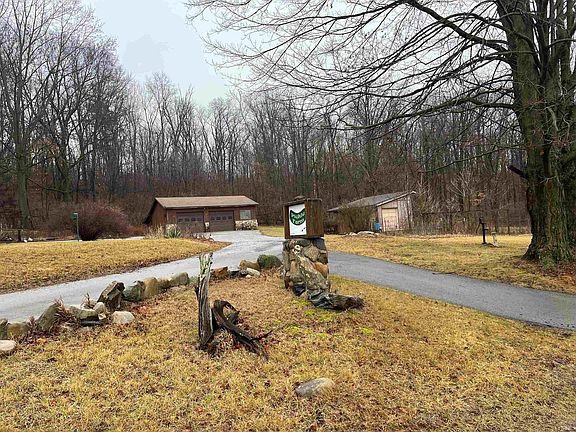 Cute little house on wooded 10 acre lot. Detached garage with storage. Chicken Coop could be storage shed. Also has shed in the woods that could be man cave of play house. Also has 10 acres of land across the road.