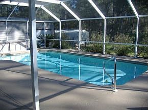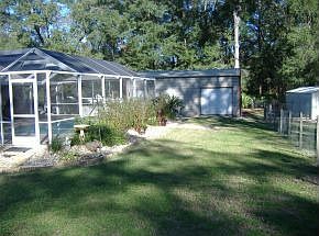 Short Sale - great property for the price. Split plan, clean, neat, move in ready. Great rm w/laminate flooring, cath. ceilings. Kit. w/brkfst bar & pantry, warm colors through out. Spacious BR's, nice mstr bath. Detached metal bldg - 44x24 (workshop/storage and 2 car carport). Concrete driveway. Addl storage unit w/fenced dog run. Entire property fenced. Screened sports pool, cov. lanai. Front porch. Sm fish pond at the front dr ent., paved rd and more! Electric entrance gate does not convey.