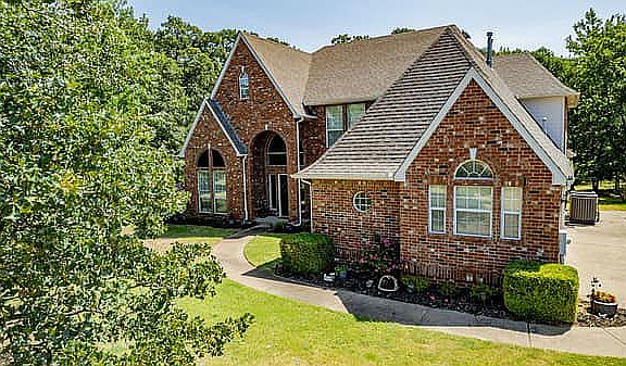 Beautiful custom built brick two story 4000 sq. ft./ ML on 1.16 acres, with mature trees. Updated inside and out, this home features 4 bedrooms, 3 1/2 baths, 2 living areas, formal dining room, study, large game room, 2 staircases, large walkout attic and 3 car garage. Kitchen has Granite Countertops, double ovens and a walk in pantry. Master bedroom is on the first level, Master Bath has heated floors. Backyard has a 2 tiered deck with a rock fireplace overlooking a gorgeous large treed lot. 10x 14 shed. entire property is fenced. The front yard has iron fencing with a iron electric security gate. REALTORS WELCOME 3% Commission. 918 630-6555