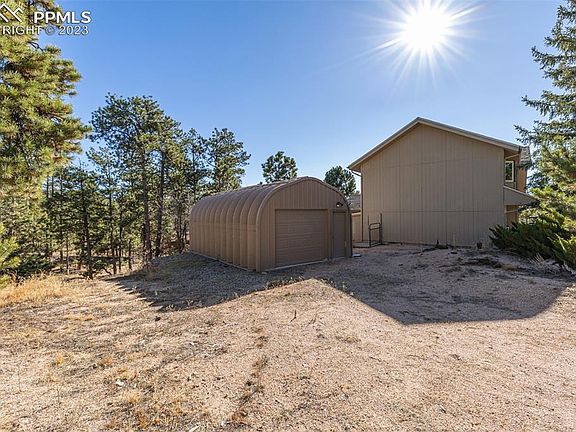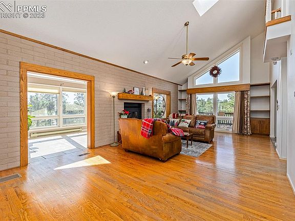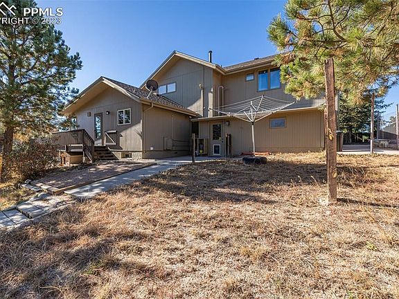 Nestled between the trees of Black Forest, this home boasts 5 acres of land with breathtaking views of Pikes Peak. The home has a warm inviting feeling as soon as you walk through the door to the cozy living room with a wood burning fireplace. High celings and light and bright, beautifully upgraded windows. Hardwood floors. There is a sunroom that has mountain views. Energy efficient windows.The kitchen is spacious with eat in diniing area. Large penninsula. Lots of storage. Master The home is perfect for entertaining, decks , and a tranquil waterfall and koi pond to enjoy. Property and neighborhood is grandfathered in so you can ride your horses.The property has a spacious detached RV trailer garage or storage for the toys. 14x20 . Radon Mitigation system, new electrical panel. Roof 2019. Tankless water heater. Hurry and see this home before its gone! Buyer to verify all information.
