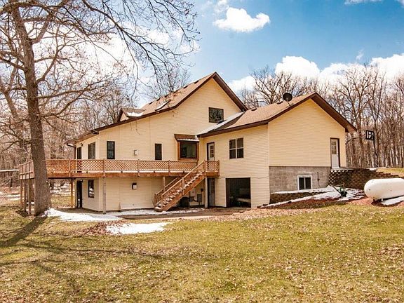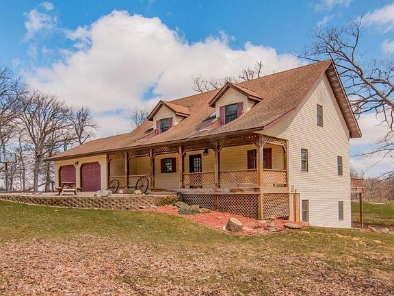 Wow 34 acres - pasture and woods - oh so beautiful and peaceful. Home is a definite beauty, great floor plan. Two stone faced fireplaces for winter pleasure, lower level walkout. Bedrooms have doors to deck, large master, bath & closet. A skyline that shines into loft and office. Also small cabin on property, owner with acceptable offer will give roof allowance of $10, 000 - still some life. Land is surveyed. 24x24 shop. There is a bus daily to Rochester and back.