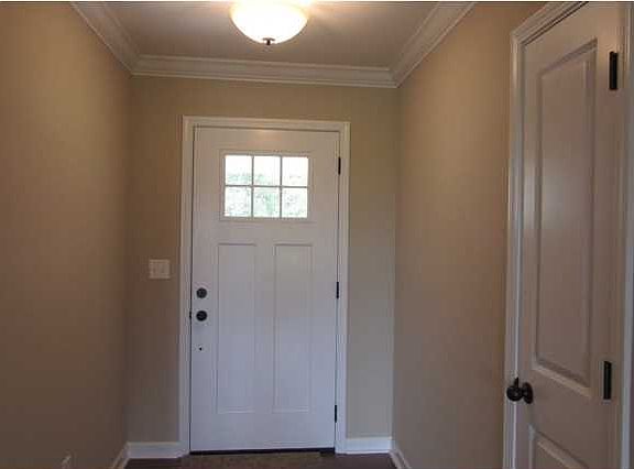 New Construction - Collins Chapel Community - Walk into the living room to an open floor plan with the living, kitchen (with an island and a pantry), and dining all in one large area. Gas log stone fireplace in the living room. Large windows to enjoy the country scenery. Master with trey ceilings and large bath, with garden tub, two separate vanities, water closet and separate shower. 2 other bedrooms, a bath and laundry. Carpet in the bedrooms only, hardwood and tile in the other rooms. 2 car garage side entrance. Front and back covered porches. Craftsman Style. Situated on 1.25 acres with beautiful country scenery. Unrestricted.