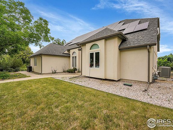 Amazing stately home in North Longmont with HUGE 800+ sq foot detached shop which has newer concrete with reinforced rebar (in addition to the attached two car garage which has an EV charger. Bring all your toys! As you enter the grand entrance your eyes will be drawn through the home to the tall windows that frame the backyard and farmland beyond. The feeling of peace and privacy will be apparent. You will notice the cozy living room to your left and the light filled office to your right (upgrades ethernet) perfect for those who work from home. The primary suite is conveniently located on the main floor and boasts two large walk-in closets and an ensuite bathroom with double sinks and jetted tub. The Family room has a double sided fireplace that also warms the dining area in the eat-in kitchen. The sliding glass doors can be opened to let fresh air in while dining. The large kitchen island allows for additional seating. The lay-out has great flow to prepare delicious meals for family and friends. There is a gas stove and panty big enough for those large grocery hauls. Upstairs you will find 3 large bedrooms one with an attached bathroom. There is also a 12 x 11 loft space perfect for a play room or media room. Wide stairs lead down to the basement with egress windows and high ceilings where there is yet another family room, a rec room and a space for a gym AND tons of storage space. Solar panels are owned.